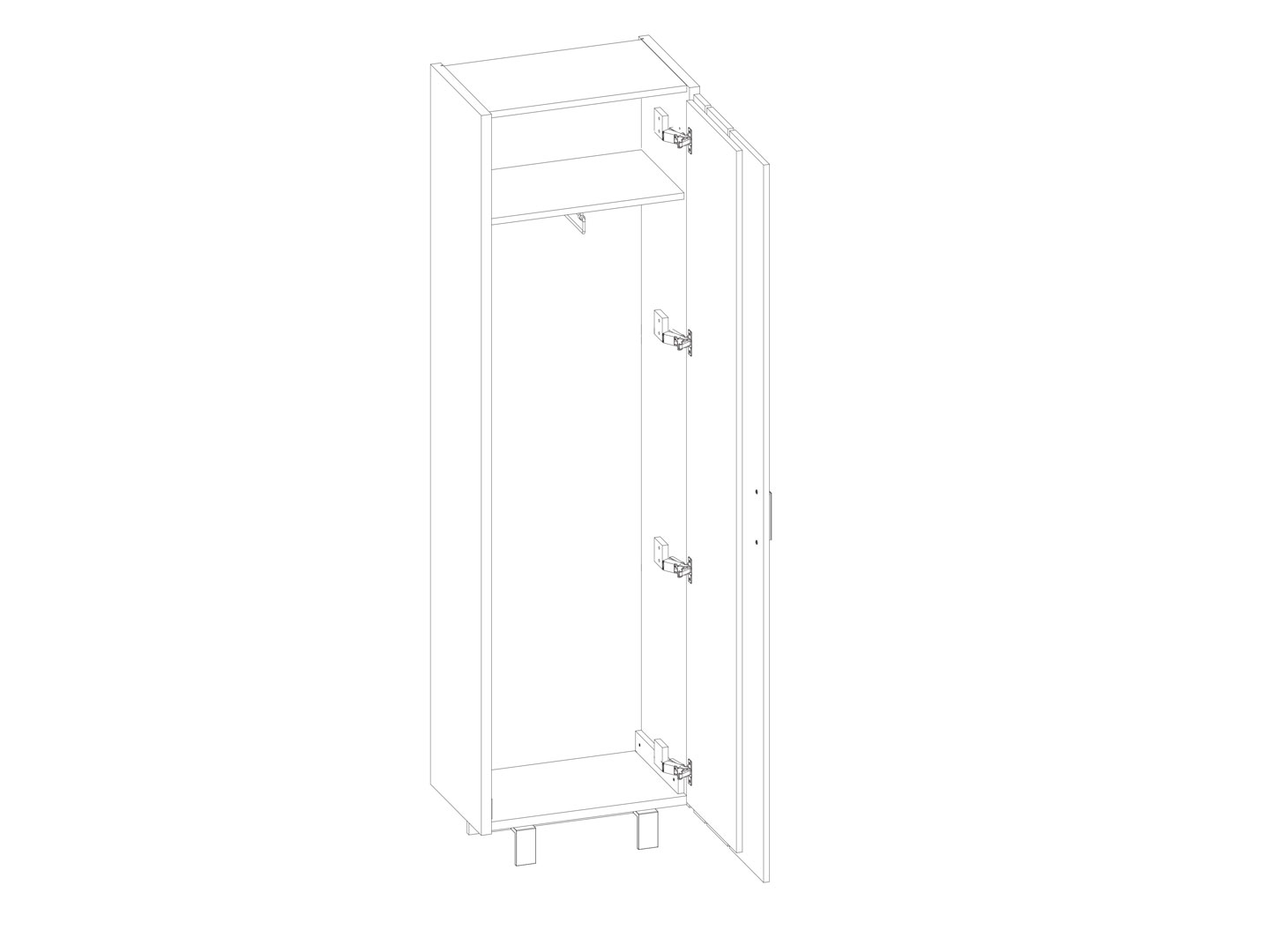- за распашной дверью расположена выдвижная штанга для одежды и полка;