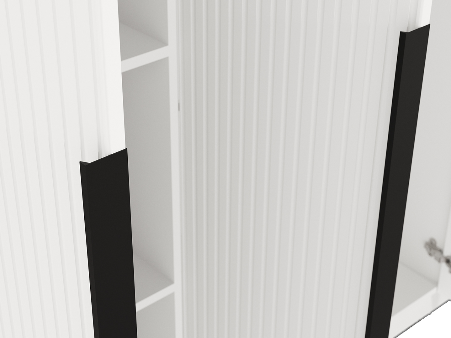 в центральной части шкафа за двумя распашными дверями расположена металлическая штанга и верхнее отделение для хранения одежды
