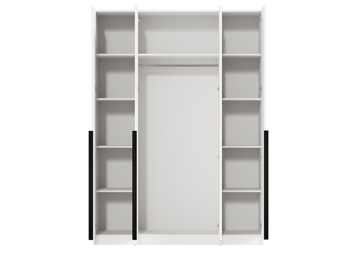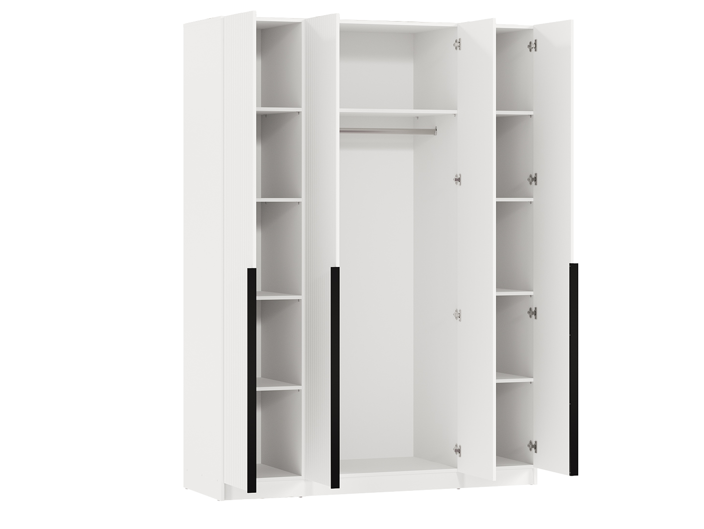 в левой и правой части шкафа за распашными дверями располагаются 5 отделений для хранения одежды;