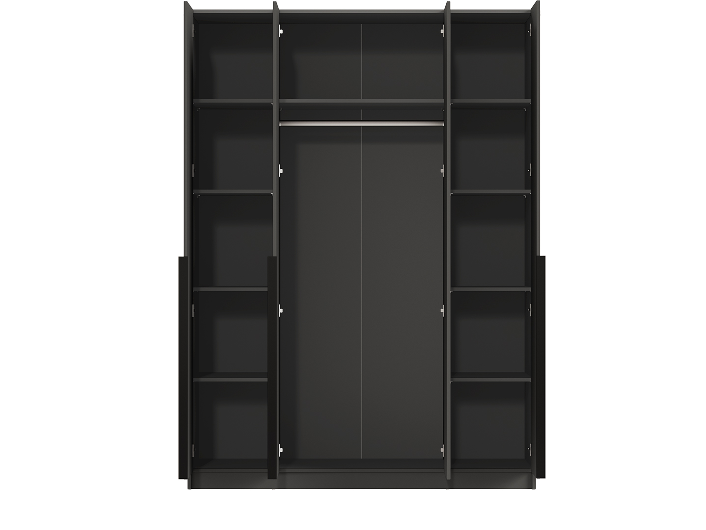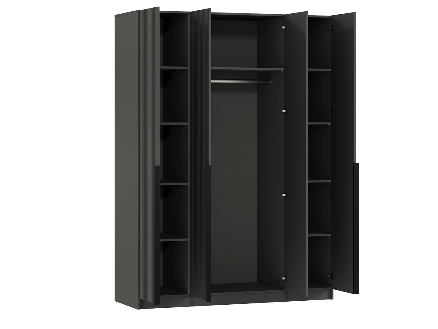 в левой и правой части шкафа за распашными дверями располагаются 5 отделений для хранения одежды;