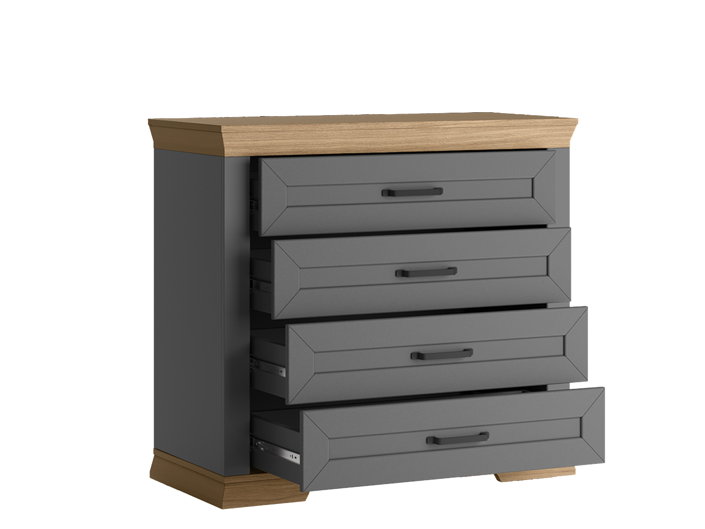 - 4 выдвижных вместительных ящика на металлических шариковых направляющих;